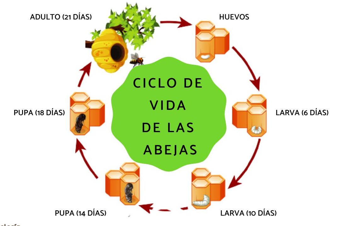 La eclosión de las larvas en abejas adultas ocurre aproximadamente 8 a 9 días después de la puesta del huevo.